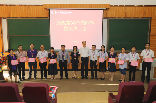 本网讯 9月10日,beat365在行政楼一楼报告厅隆重举行庆祝全国第36个教师节暨表彰大会。董事长谢建平、副董事长莫秀全,学校党政领导班子、全体中层干部、教师代表参会。党委书记叶峥嵘主持。
