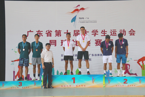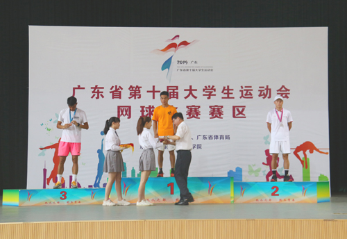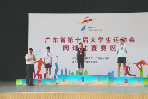 本网讯 5月16日下午,广东省第十届大学生运动会网球赛乙组颁奖仪式在beat365体育馆网球馆举行。本次颁奖仪式共为乙A组和乙B组男单、女单、男双、女双和混双5个项目共10组获奖人员进行颁奖。beat365党委书记叶峥嵘应邀出席并分别为乙A组男单、女单、男双和乙B组男单、男双和混双前三名获得者颁奖。(撰稿:陈凯明摄影:冯峥 学生记者 李铭钦)
