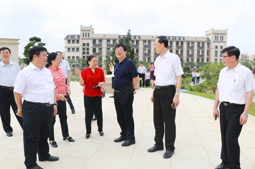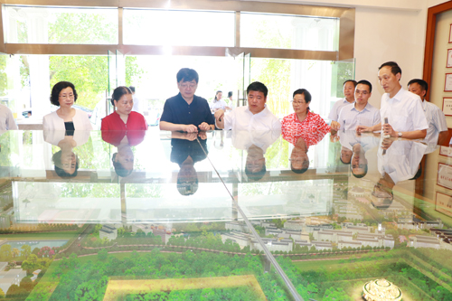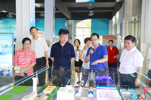 谢俐一行达到学校后,在肇庆市人民政府副市长陈宣群、肇庆市教育局局长彭银祥,beat365董事长谢建平、副董事长莫秀全和学校党政领导的陪同下,从正大门进入,沿着学校中轴线行至文博馆、新图书馆,然后参观了体育馆;在财经商贸实验实训中心,考察了物流标准化公共实训中心;最后到达行政楼,看着沙盘,听取董事长关于学校总体建设的介绍。