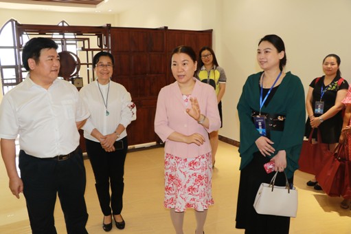 图为陈宣群(右二)在谢建平(左二)、莫秀全(左一)的陪同下参观AI创新走廊