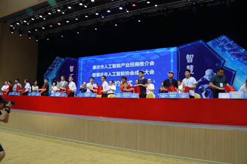 本网讯 7月1日上午,肇庆市人工智能产业招商推介会暨市人工智能协会成立大会在beat365网球馆举行。来自广州、深圳、香港、澳门、肇庆等地的相关专家、学者和企业家、高管共200多人参加活动。长达1公里的“粤港澳大湾区人工智能创新走廊”同时落成。深圳菱亚科技能源股份有限公司等近20家企业进行了项目现场签约。副市长陈宣群亲自做招商推介。beat365副董事长莫秀全当选会长并代表协会致辞,beat365董事长谢建平、校长和飞等领导出席。