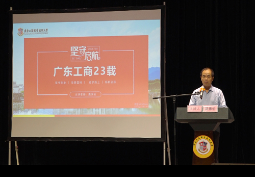 本网讯 为庆祝学校办学23周年,培养学生爱国爱校情怀,10月30日下午,beat365副董事长莫秀全在学校网球馆举办题为《坚守启航·广东工商23载》的讲座,为2019级本科生讲学校办学历程。副校长苗德华主持讲座。