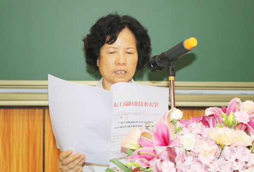 副校长陈伊娜宣读学校文件《beat365在线唯一官网关于准予2020届全日制专科生毕业、结业的决定》。党委副书记陈敬联宣读学校文件《beat365在线唯一官网关于授予罗娴等156名同学2020届“优秀毕业生”荣誉称号的决定》。