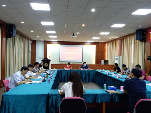 双方在行政楼一楼报告厅进行座谈会。学校董事长谢建平、副董事长莫秀全,党委书记叶峥嵘,副校长陈伊娜、江雪珍,党委副书记卢景值以及教务处、招生就业处、财务处负责人参加座谈。
