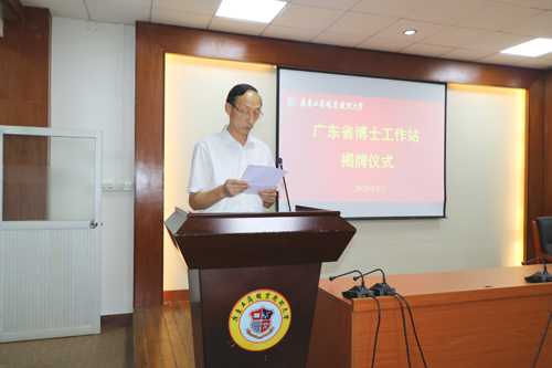 和飞在讲话中指出,博士工作站是广东省博士人才管理服务的创新平台,在高等院校设立博士工作站,是广东省实施人才强省战略和创新驱动发展战略,打造创新人才高地,为实现“四个走在全国前列”提供坚强人才保障和智力支持的重大战略举措。学校此次获批设立广东省博士工作站,标志着学校教学科研方面又迈出新步伐,有助于吸引更多高层次人才聚集,对学校开展职业本科试点改革、培养高层次技术技能型人才、进一步增强办学综合实力具有十分重要的意义。