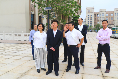 昝继强一行在两位董事长和校领导的陪同下先后参观了校园建设及设施、学校健康与家政管理学院实训室、智慧党建VR实训场地、电子商务实训基地等场所。