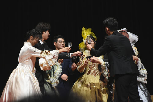 歌剧选段《饮酒歌》轻快的舞曲节奏,充满青春和活力,表现了主人公对真诚爱情的渴望和赞美。