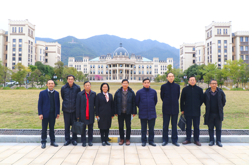 图为省市专家学者在校领导陪同下参观新图书馆