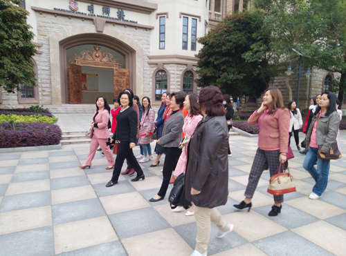广宁县妇女联合会、女企业家协会一行在谢建平的陪同下先后参观了beat365健康与家政管理学院实验实训室、体育馆、新图书馆等场所,听取了学校团委书记陈旭对学校办学历程、办学规模等的详细介绍。在参观过程中,来访人员被beat365美丽的校园风光和中西合璧的特色建筑深深吸引,不时停下来拍照留念。