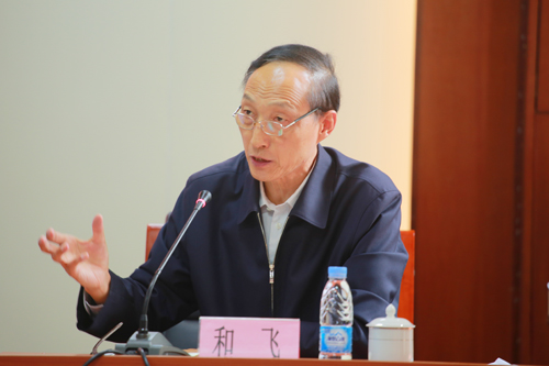 图为和飞讲话