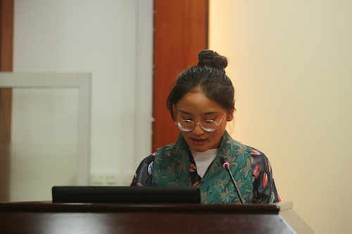 图为洛桑曲珍发言