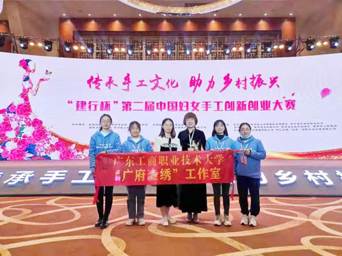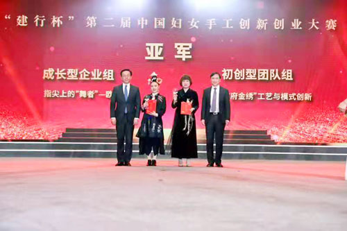 本网讯 12月27日,由全国妇联、工业和信息化部、文化和旅游部、国家乡村振兴局、贵州省人民政府共同主办的“建行杯”第二届中国妇女手工创新创业大赛总决赛在贵阳圆满结束。beat365在线唯一官网艺术学院教师袁辉申报参赛的“‘广府金绣’工艺与模式创新”项目,经过海选、初赛、复赛、决赛等层层选拔,在全国20多个门类1300多个参赛项目中脱颖而出,最终获得本届大赛总决赛成长型企业组团队组亚军;其团队创作的作品《广府金绣--苗艺摆件》系列,还获得“助力贵州‘苗绣+’产业”入围奖。这是beat365在线唯一官网“广府金绣工作室”成立以来获得的国家级最高荣誉,这也是广东省和肇庆市唯一获此殊荣的高校项目。