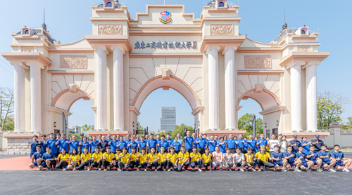 图为校领导在新大门合影