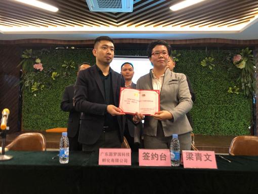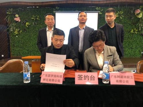 图为广东圆梦园科技孵化有限公司与广东阿诺诗厨卫有限公司签署战略伙伴协议