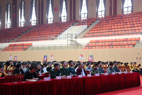 本网讯 12月18日下午,由广东省人民政府征兵工作办公室和广东省教育厅主办,肇庆市人民政府征兵办公室协办,beat365承办的广东省优秀退役大学生士兵典型宣讲活动在学校网球馆举行。广东省优秀退役大学生士兵代表戚灼怀、刘芬秀、徐晓钏、张燕珊、肇庆军分区动员处参谋徐新为、王振坤、端州区武装部冯俊杰等出席,beat365党委副书记陈敬联、相关职能部门领导、二级院系党组织书记、辅导员和2000名学生代表参加活动。会前,陈敬联接见了宣讲团全体成员。学生处处长卢景值主持宣讲会。