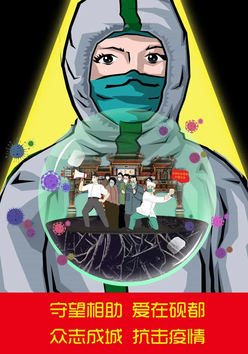 学生以“以艺战疫,共克时艰”为主题,通过海报、书画等丰富多彩的形式,对英勇战斗在防疫一线的医护人员和奋战在抗疫前线的有关工作人员进行讴歌赞美,对戴口罩、勤洗手等防疫小常识进行普及,对谣言、不实言论进行抵制……作品表达了学生们对艰难时刻,逆行而上的“战士”们的深深敬意,抒发了全国人民彼此牵挂,心心相连,共克时限,战胜疫情的决心。(供稿:学生处 何浩雯)