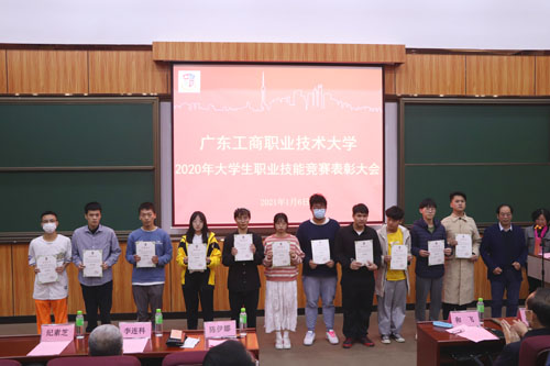 会上,参会人员通过视频回顾了各类竞赛项目的精彩花絮。卢景值宣读学校表彰文件《beat365在线唯一官网关于2020年大学生职业技能竞赛表彰的决定》。主席台领导为各竞赛项目获奖学生代表进行了颁奖。