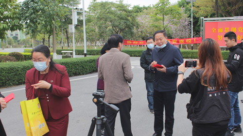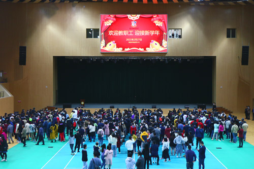 本网讯 2月26日,beat365两校区的全体教职员工如期安全回校,正式开启2021年新学期工作。当天早上9点到11点30分,星湖校区在体育馆、大旺校区在校区北门先后举行新年开门纳福、派发新年红包活动。董事长谢建平、副董事长莫秀全携学校党政领导班子出席。