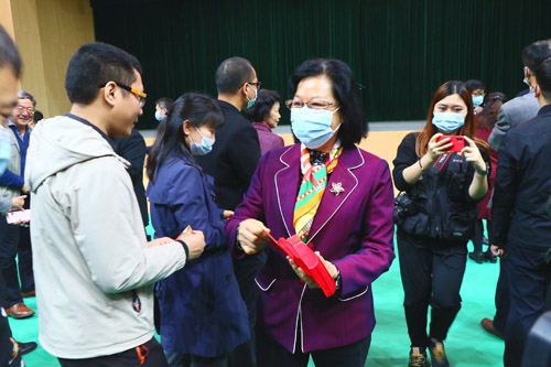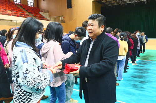 随后,学校党政领导班子全体成员在谢建平、莫秀全两位董事长的带领下,给在场的教职工派发新春红包,现场气氛一片喜气洋洋,洋溢着浓浓的温情。(撰稿:陈凯明 摄影:冯峥)