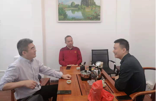 2021年4月21日上午,创新创业学院龙辉驰副院来到肇庆鸿大投资管理有限公司拜会张仲斌董事长,就我院目前已启动的百名家进校园大讲堂一事与张董事长进行深度沟通,初步商定5份月张董事长莅临我院开展创业讲座。