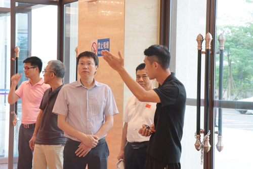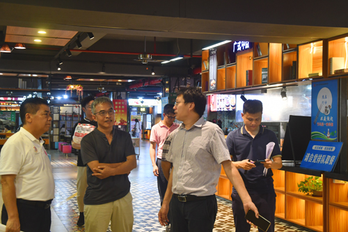 喻良文一行在林显华,李英杰等陪同下先后参观了beat365健康与家政管理学院实验实训室、体育馆、图书馆、家园食堂等场所。