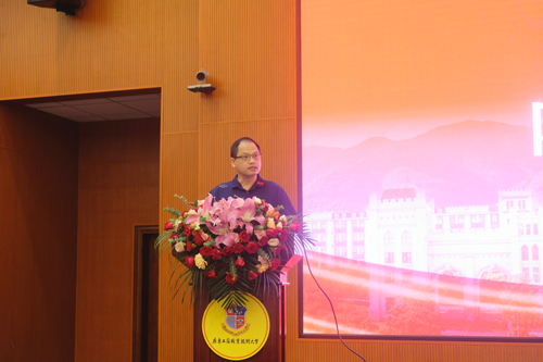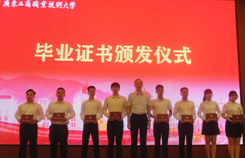商学院教师阮晓华代表教师发言。他寄语同学们在日后的工作生活中做一个具备专业知识和文化素养的有内涵的人,做一个善于独立思考、具备新理念新思想的时代新人,做一个能够正视挫折,跌倒了再站起来继续前行的人,做一个具有担当精神的人,不断修炼人生,提升自己的能力,成为一个对国家、对社会有贡献的职业技能型人才。