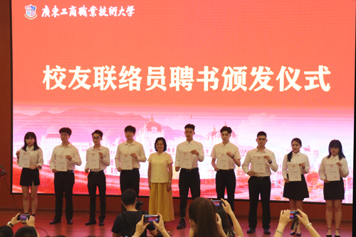 图为谢建平为2021届校友联络员颁发聘书