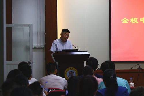 本网讯 6月28日下午,学校在行政楼一楼报告厅召开全校中层干部会议,专题研究部署招生、2019级学生实习和新员工报到等相关工作,学校党政领导班子成员、单位中层管理干部正副职、各二级党组织正副书记等参会。党委书记叶峥嵘主持。