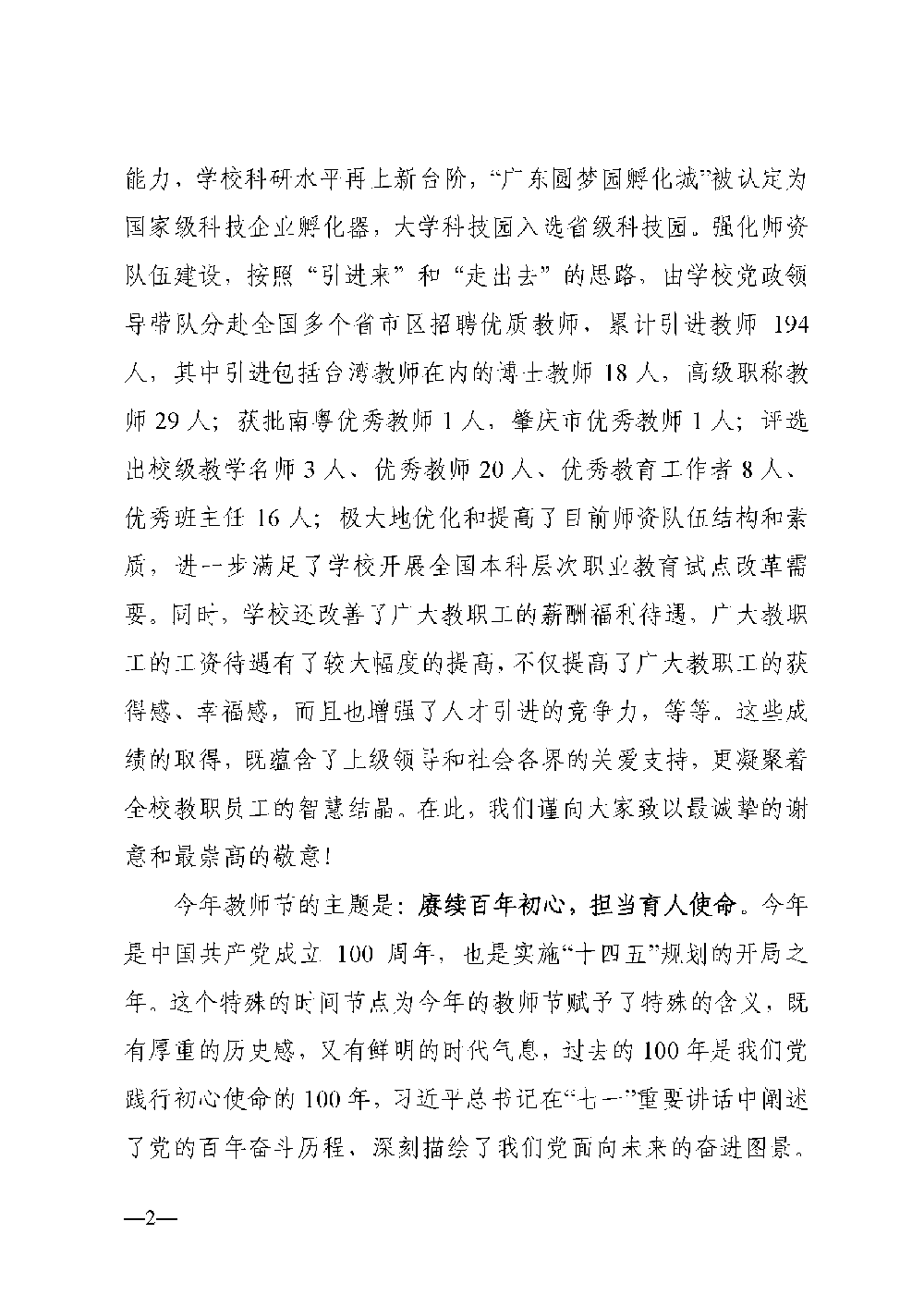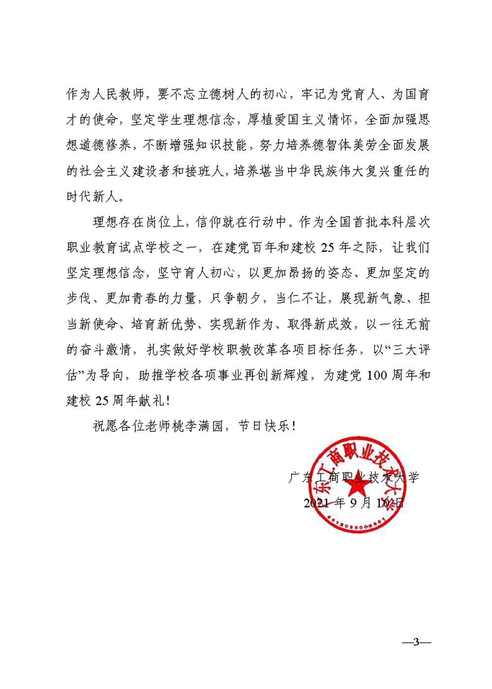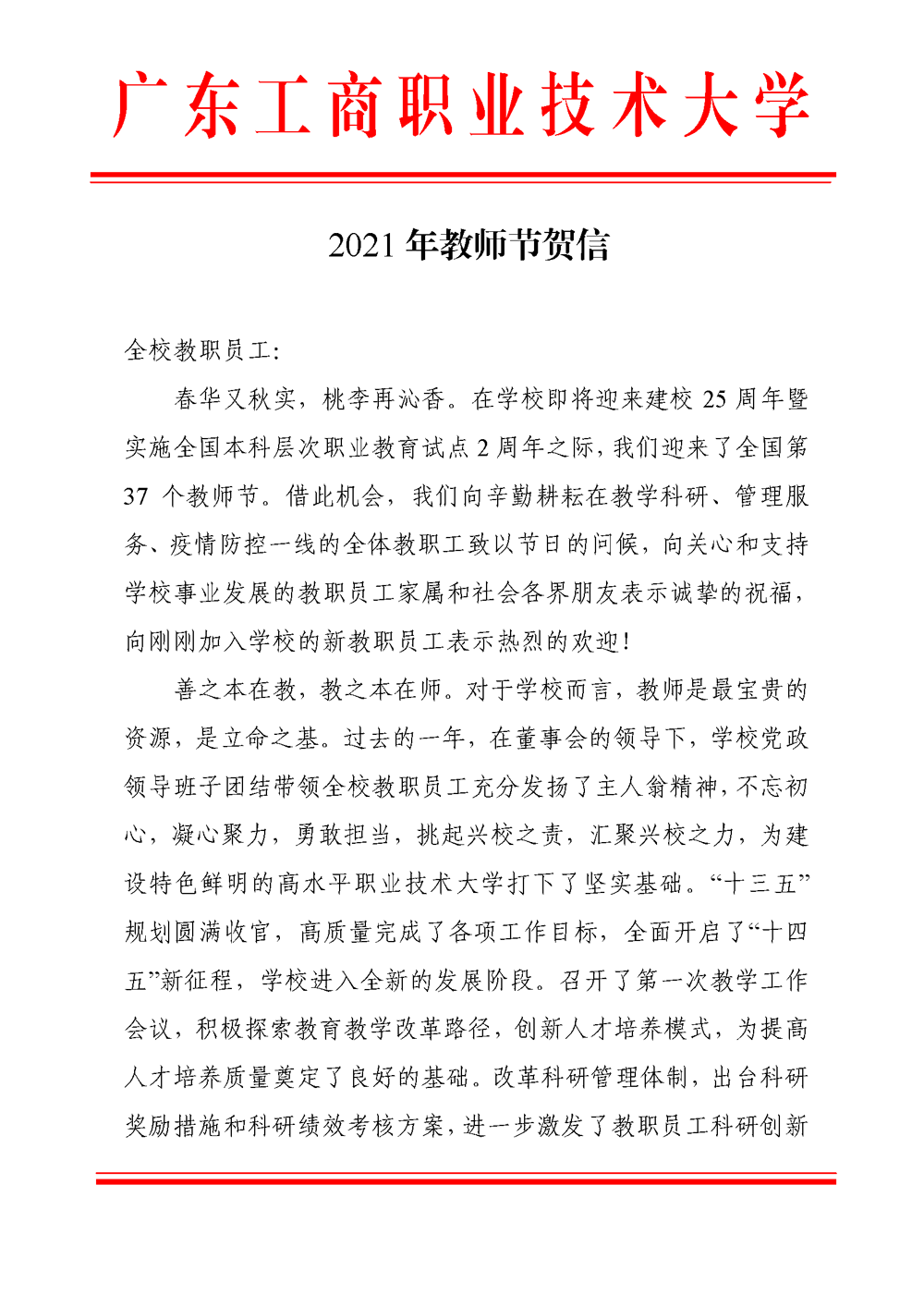 2021年教师节贺信