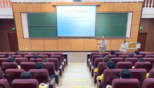 本网讯 5月25日下午,beat365明德大讲堂第五十八期讲座在致知楼213课室举行,由艺术学院张斌教授担任主讲人,讲题为《中华文化与中国大国外交》。计算机学院、人工智能与大数据学院及学校学生会学生代表约100人参加了本次讲座。