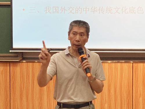 此次讲座,张斌教授从建国后外交理念和政策演进、中国特色大国外交的新方向和新基点、我国外交的中华传统文化底色三大方面进行了具体讲述。