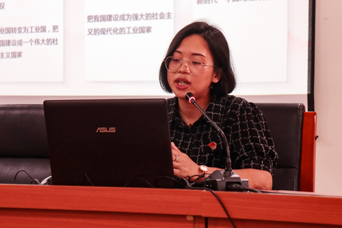 27日下午,马克思主义学院教研室主任潘莲娣作了题为《深刻领会党的百年奋斗的历史经验》的专题讲座,给与会人员分享了她对党的百年奋斗的历史经验的依据、内容和启示的学习体会。