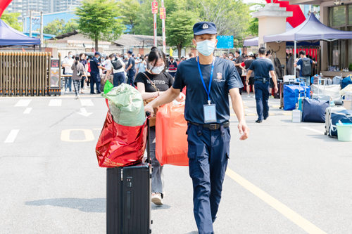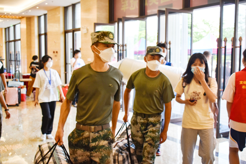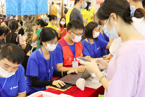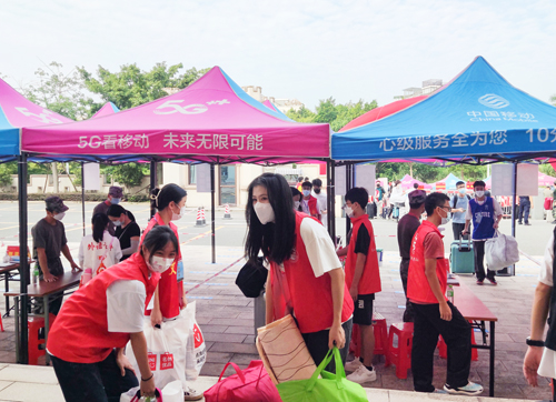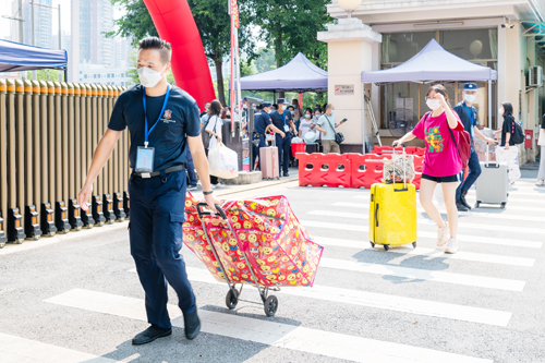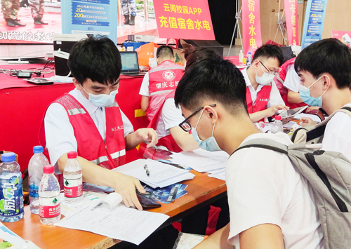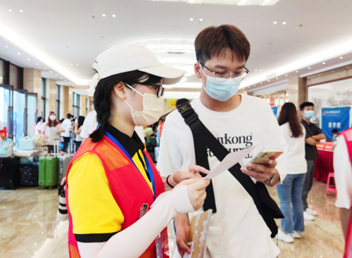 在迎新现场,按照省、属地和学校的防疫要求,新生在师生志愿服务人员的帮助引导下完成体温检测、健康码扫码、身份核验、报到手续等流程,报到现场井然有序。同时,学校还专门设置“绿色通道”服务区,为家庭经济困难新生提供相关服务。