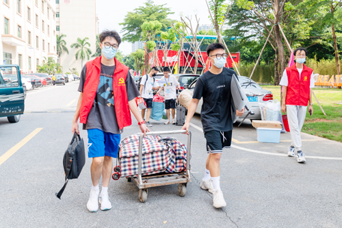 董事长谢建平、副董事长莫秀全及学校党政领导来到迎新现场,了解新生报到情况、服务保障措施和各单位迎新举措,要求全体工作人员要树立“安全第一”的工作理念,以人性化的周到服务,统筹做好疫情防控和新生报到工作,让学生舒心、让家长放心。同时,董事会领导和学校党政领导还专门与2022级新生进行亲切交谈,对他们的到来表示热烈欢迎,勉励他们尽快转变角色,及早适应大学生活,做好人生规划,好好学习知识技能,努力成长为能堪当时代重任的合格的高层次职业技术技能型人才。在学校的各条校道上,随处可见师生志愿者为新生提供路线引导和行李搬运。
