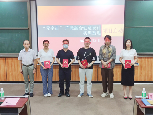 启动仪式上,校企双方为企业兼职工程师和学校兼职讲师相互颁发聘书。仪式结束后,校企行三方相关人员召开了“元宇宙”产教融合创意设计实训基地的第一场双兼职教师研讨会。(撰稿:潘惠苹 摄影:黄龄菲)