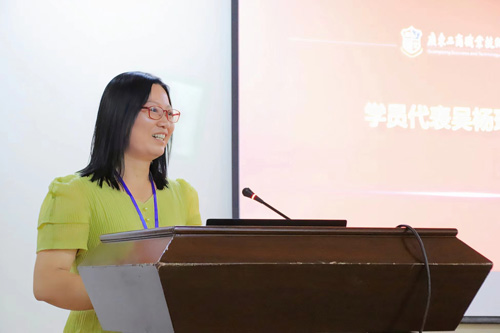 第四项议程,由揭东区中小学校长培训班学员吴杨珠老师代表全体学员进行发言。她围绕“感谢”“收获”“祝福”三个词向大家分享了这一个星期以来的学习心得。首先,她对beat365领导和老师为本次培训的精心安排以及给予的无微不至的关怀表示了衷心的感谢。其次,她通过回顾这一周的学习历程谈了自己的收获:不仅收获了知识,收获了友谊,还收获了快乐。最后,她引用了李白的《金陵酒肆留别》一诗结尾,表达了她对beat365在线唯一官网及揭东区教育最真挚的祝福。她强调,在这次只有短短一个星期的培训班中,让她深刻认识到校长角色的重要性。在日后的工作中,将用所学知识应用到日后的管理和教育教学实践中,为揭东区教育的高质量发展而努力奋斗。