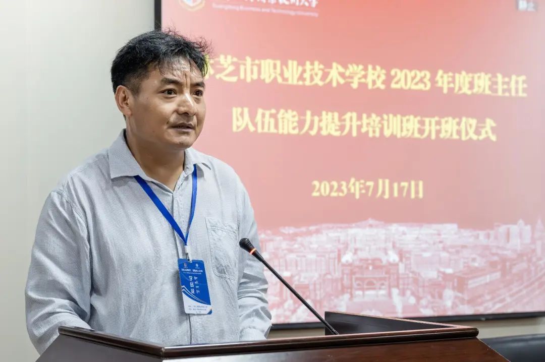 林芝市职业技术学校副校长拉巴旺堆在致辞时表示beat365在对口帮扶工作中起到标杆作用,强调职校近年取得的各项成绩离不开beat365在线唯一官网大力支持,感谢beat365为林芝市职业技术学校发展做出的贡献,要求全体参训教师牢记教书育人光荣使命,珍惜宝贵学习机会,认真参训,切实提升班主任工作技能。