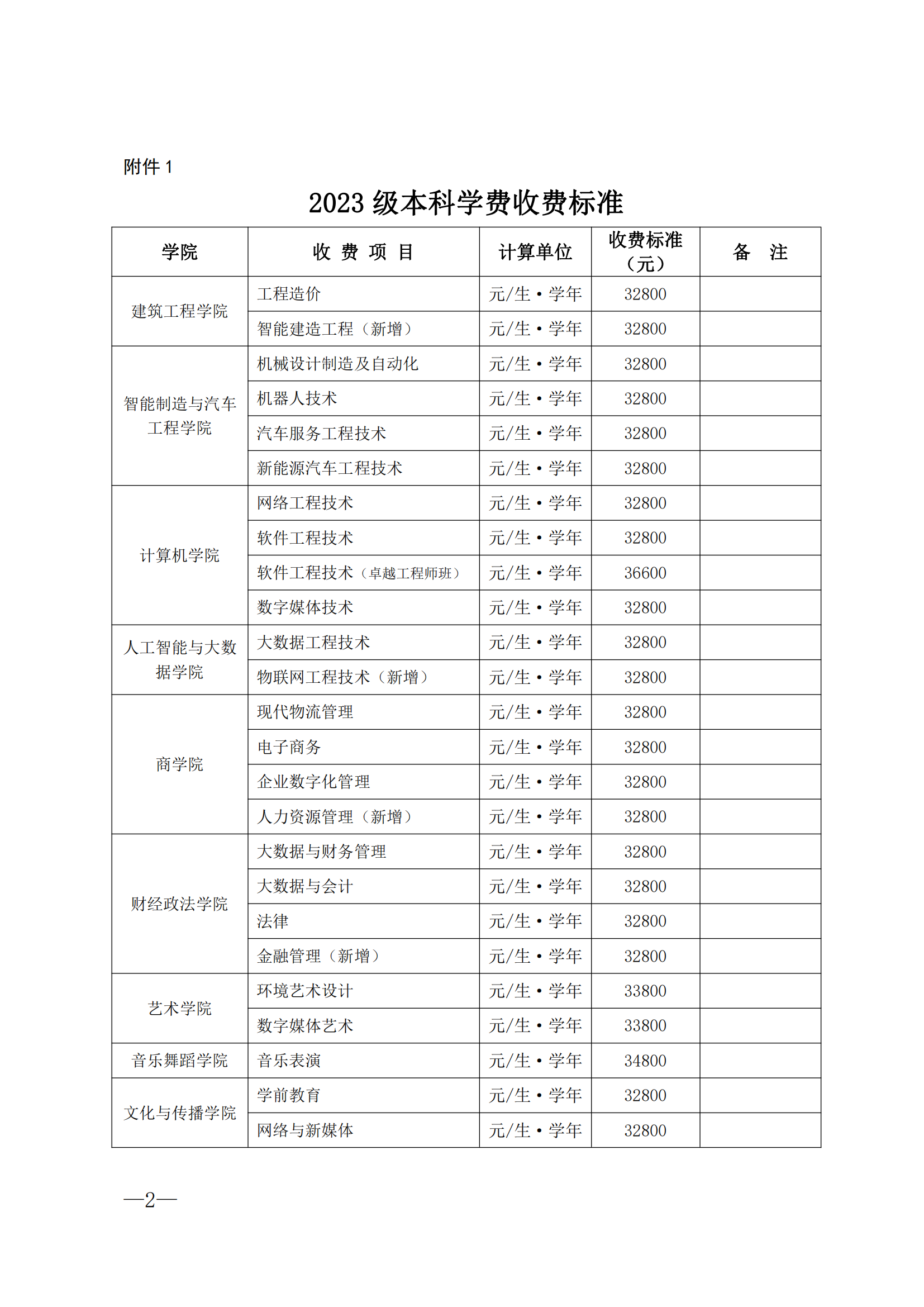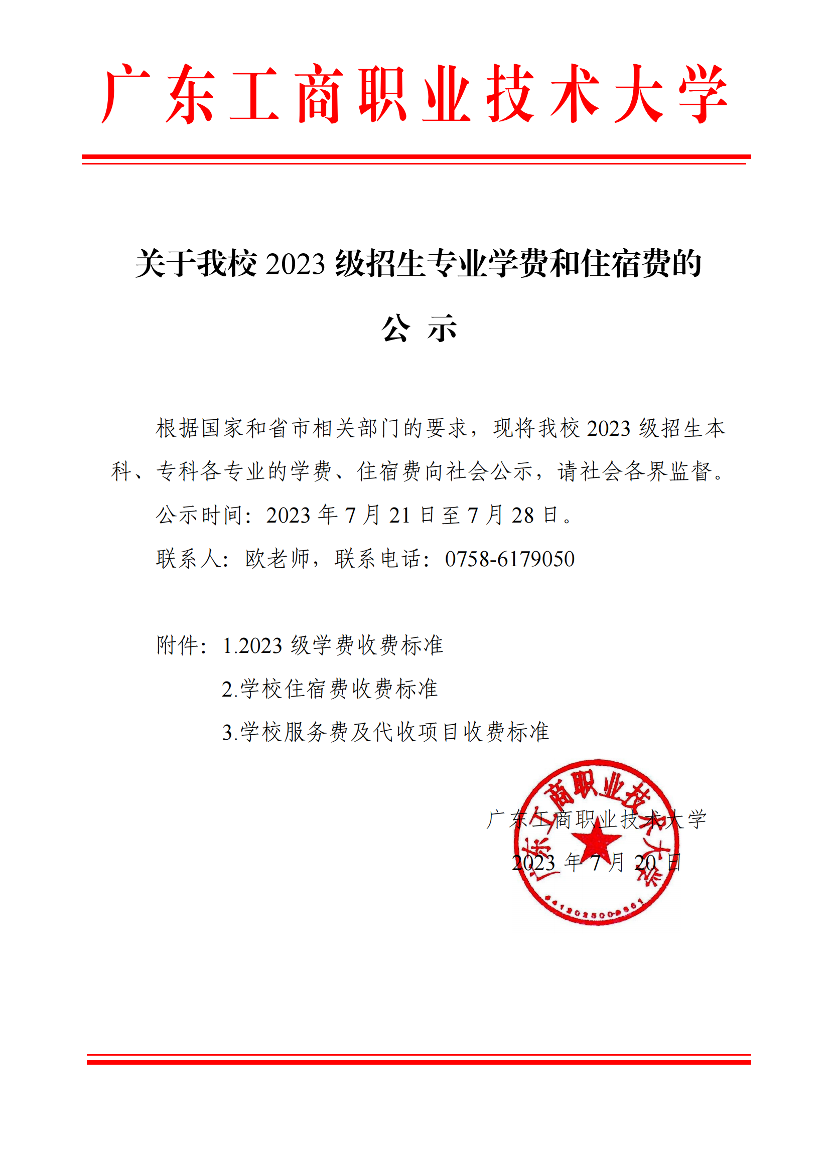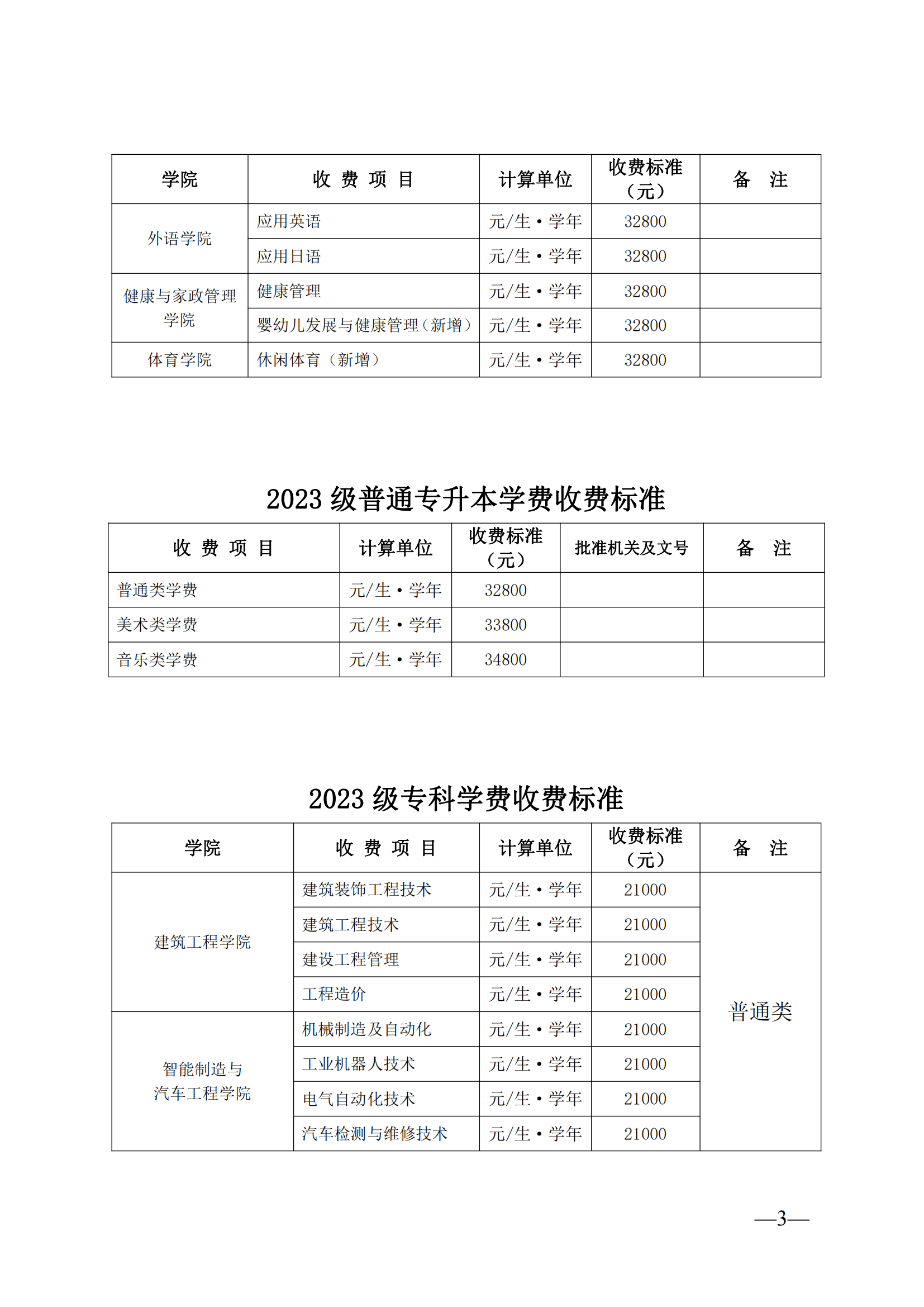 beat365在线唯一官网 2023 级招生专业学费和住宿费的公示