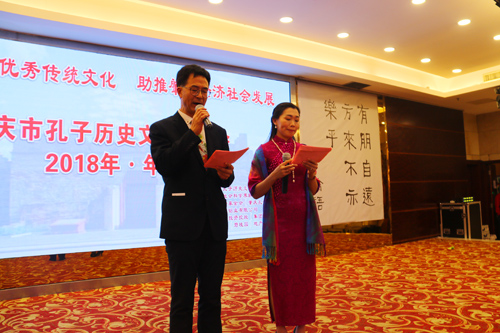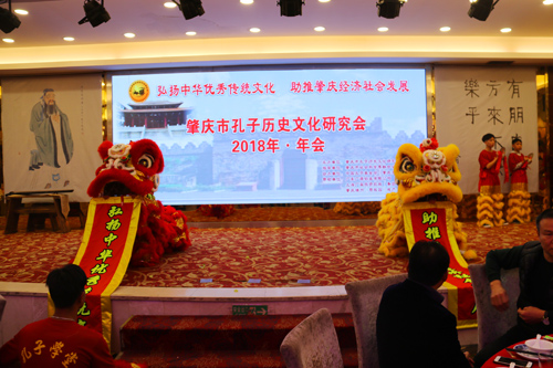 本网讯 1月23日晚上,“弘扬中华优秀传统文化 助推肇庆经济社会发展”肇庆市孔子历史文化研究会2018年会在国际酒店五楼举行,广东省广府文化产业促进会会长廖伟阳,肇庆市社科联主席朱英中出席年会并致辞。肇庆市孔子历史文化研究会会长孔小萌总结研究会工作。国务院驻广东办事处、中国国际国学研究院、四野广州军艺合唱团、凯悦丝路城市文化公司等来自全国各地的领导和嘉宾出席。研究会会员和来自肇庆各文化团体代表共500多人参加。beat365宣传部长韩治国作为肇庆市孔子历史文化研究会会副会长参与策划本次活动,并担当男主持。