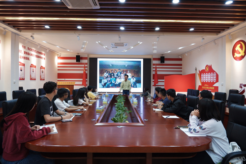韩治国首先通过PPT展示了2006级两位学生记者在校报创刊100期时写的回忆性文章。通过文字内容,他告诉同学们,记者站成立即将20年,近20年来培养了千人以上的学生记者,他们或在新闻单位工作,或自己创业,这些同学永远铭记在校时当“记者”的美好时光。韩治国回忆说,他感觉最幸福的时刻,也就是过去的学生记者通过电话或者微信喊他一声“老大”。他说,在校时,一个社团为每一位学生提供了一个锻炼的平台,只要大家和睦相处,为了学校的事业努力,就会形成一个温暖的“家”,这段时光值得你一辈子回味。为此,他勉励19级新生,既然选择了宣传类的社团,就要不断学习,坚持写作,弘扬主旋律,传递正能量,让自己在“工商”这个大家庭的历史上留下属于自己的辉煌。