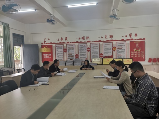 图为检查组在文化与传播学院检查材料