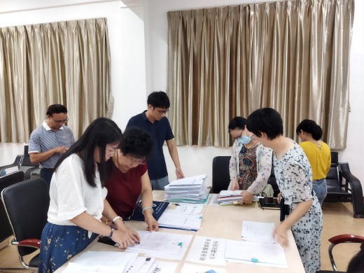 图为教学督导与评估中心主任王亚芹(左二)检查教学文件