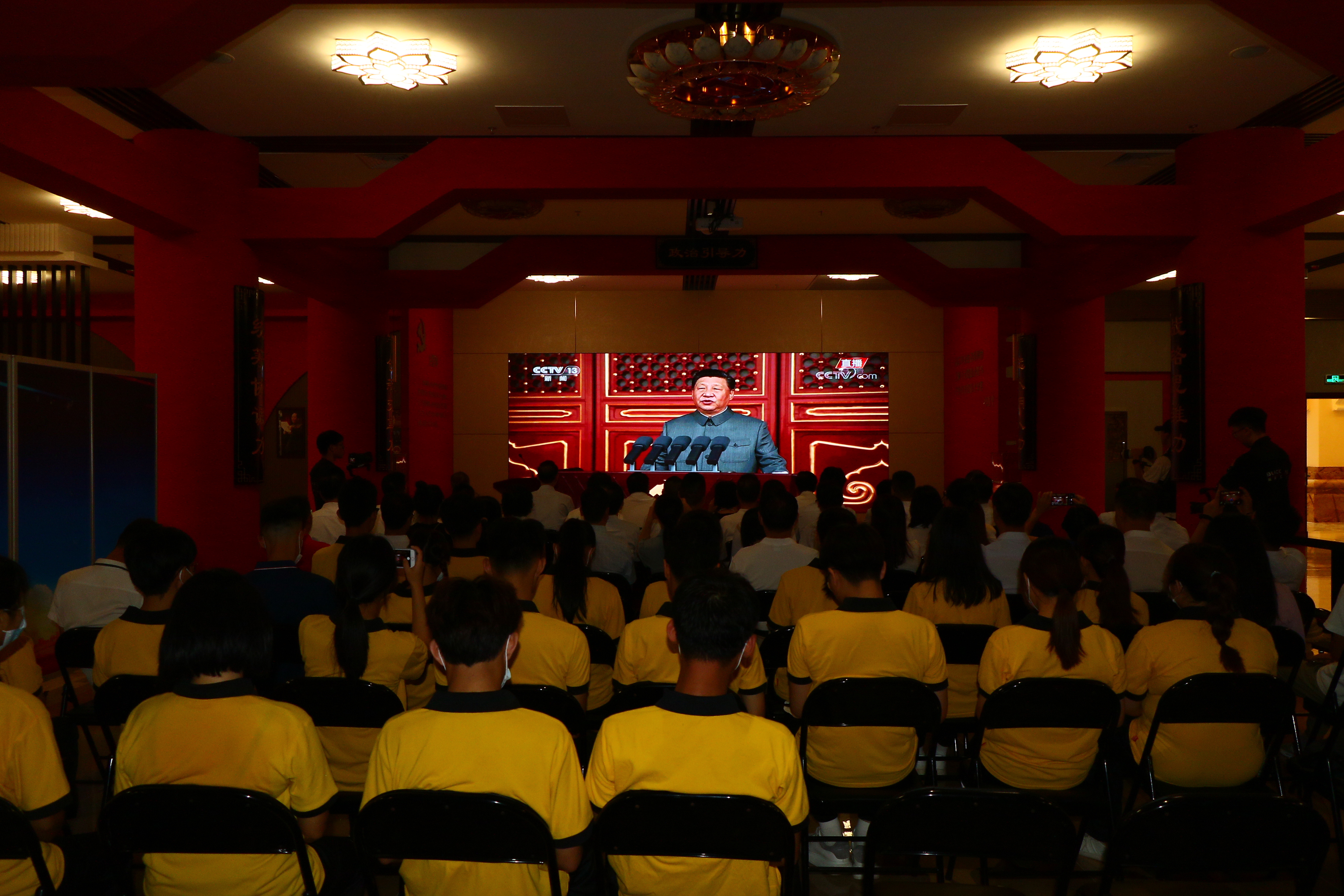 本网讯 7月1日上午,beat365分别在党史馆、行政楼一楼报告厅、大旺校区初心堂会议室等场所组织师生集中观看庆祝中国共产党成立100周年大会盛况,聆听习近平总书记重要讲话,共同庆祝中国共产党成立100周年华诞。