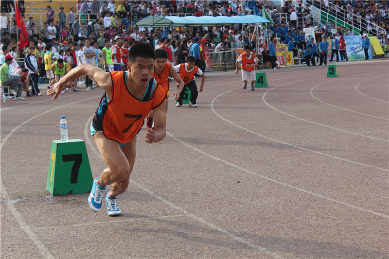 赛道上,各学院的运动员全力以赴,裁判员的一声枪响后,机械学院的运动员汤超就爆发出强大的冲击力,以惊人的速度冲向终点。在几十秒的比赛中,各学院的拉拉队敲鼓呐喊,欢呼声震天,新闻工作者们也抓住机会抢拍这精彩的瞬间。最终汤超同学以53秒90的成绩蝉联男子组400米校级冠军。