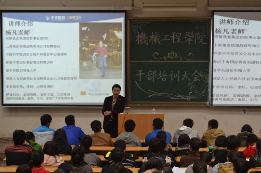 11月13日晚,kaiyun开云官方于3教217举行干部培训大会,此次培训诚邀中青国际的杨凡老师为大一新生干部作演讲。 在演讲中,杨老师幽默的话语让会场气氛活跃融洽,他在与同学的沟通中为大家答疑解惑,以其中肯的言语及丰富的社会经验为大家带来了一场心灵的盛宴,使大家在学习及未来的职业生涯中有所目标。杨老师为学生们提出了三个作为优秀人才必须具有的能力:勇气、知识和沟通交流。 他表示不论做任何事首先要有勇气,其次是学习知识为争取机会作准备,而最重要的还是人际交往,人际交往能够更大限度地发展自己成就自己。演讲结束后,由学生向杨老师请教,同时在与会学生中做了有奖问卷调查。最后,三位同学幸运地得到了老师带来的礼物,大会愉快结束。