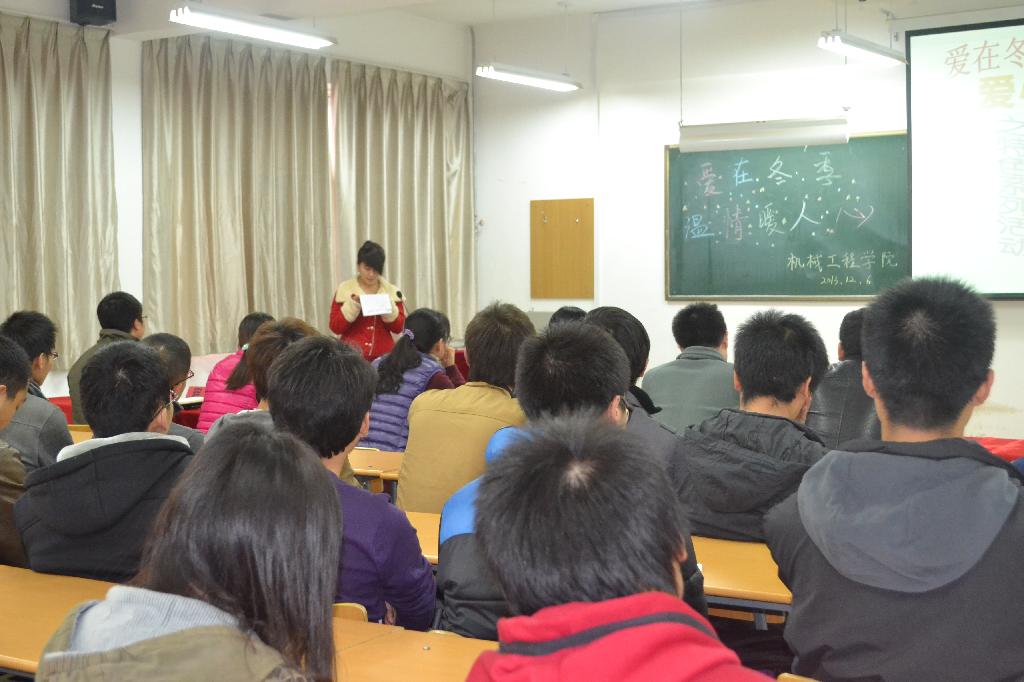 12月6日,kaiyun开云官方“爱在冬季,温情暖人心”主题关爱贫困生特色系列活动在十教502隆重举行,本次活动秉承我院长期坚持的用爱温暖和激励贫困生成长成才的宗旨,通过给贫困生发放保暖内衣的形式给贫困生送来切实的温暖,展现机械学院对贫困生的重视与关心,从而培养我院学生浓烈的感恩意识以及自尊、自爱、自律、自强的优良品格。活动由院资助工作部主要负责,主管我院资助工作的12级辅导员程鹏老师主持本次活动,校资助管理中心刘红艳老师、院团委书记陈霂老师、11级辅导员芮智刚老师、12级辅导员李彩虹老师以及13级辅导员张立显老师也出席参加了本次活动。