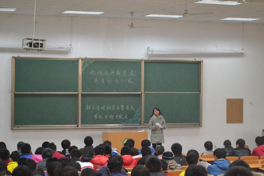 2013年12月20日,由我院13级辅导员张晶晶老师主持的期末考风考纪教育动员大会在9教101召开,13级机设全员参会。 会上,张老师就上半学期所出现的问题做了总结,认真宣读了学校就期末考试下发的教务函,让大一同学了解考试违纪作弊的危害,并动员教育同学们积极有序开展期末各科复习。最后,以班为代表同学们自愿地签署了承诺书。 自此,机械学院13级全员已进行动员教育,同学们热情高涨的投入复习中。
