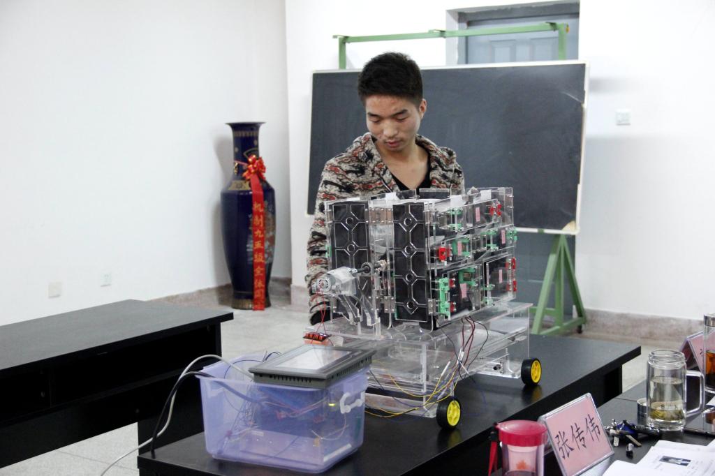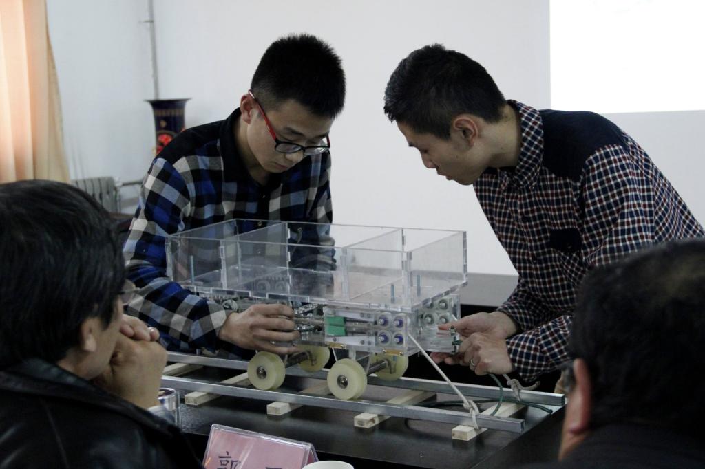 比赛采用作品实物、模型演示及现场问辩的方式进行,各参赛队伍按抽签顺序逐一进行实物、模型演示和现场答辩。比赛开始后,吕叻加老师介绍了比赛评委并宣读了比赛规则,曹现刚副院长就本届比赛的组织、开展情况做了简要通报,对比赛过程中默默付出的指导老师和工作人员表示了慰问,并预祝参赛选手在决赛中取得优异的成绩。在每一组紧张的6分钟实物、模型演示和4分钟评委提问、学生答疑后,经评委认真打分、评议,最终评出一等奖3项,二等奖6项,三等奖9项。
