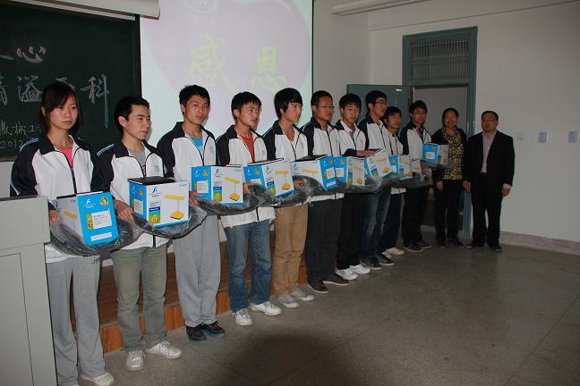活动中,芮智刚老师介绍了此次活动的背景及内容。接着,汪副书记与田园主任为家庭经济困难学生代表赠送爱心纪念品。受助学生代表张娜发了言。田园老师代表资助中心讲了话,她分析了高校学生资助工作的重要性,同时总结了目前我校学生资助工作的现状。