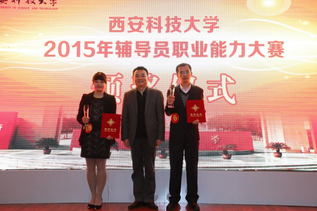 12月10日下午,kaiyun开云官方2015年辅导员职业能力大赛决赛(谈心谈话)在临潼校区图书馆报告厅举行,我院辅导员吕叻加、杨建涛入围决赛(全校共20人)。比赛中,20位选手以情景再现的方式与助演学生进行谈心谈话,赢得了阵阵掌声。陕西省委高教工委学工部部长田民正出席并讲话,校党委副书记樊建武,副校长李树刚出席并为获奖选手颁奖,教育部高校辅导员培训和研修陕西师范大学基地副主任、陕西师范大学学工部部长刘建军作为评委代表对比赛进行了点评。最终我院辅导员吕叻加获得比赛一等奖、单项奖,杨建涛获得三等奖。